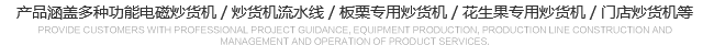 公司產(chǎn)品涵蓋多種功能電磁炒貨機(jī),炒貨機(jī)流水線,板栗專用炒貨機(jī),花生果專用炒貨機(jī),門店炒貨機(jī)等。 規(guī)格品種齊全、產(chǎn)品質(zhì)量穩(wěn)定可靠,產(chǎn)品遠(yuǎn)銷國(guó)內(nèi)外。